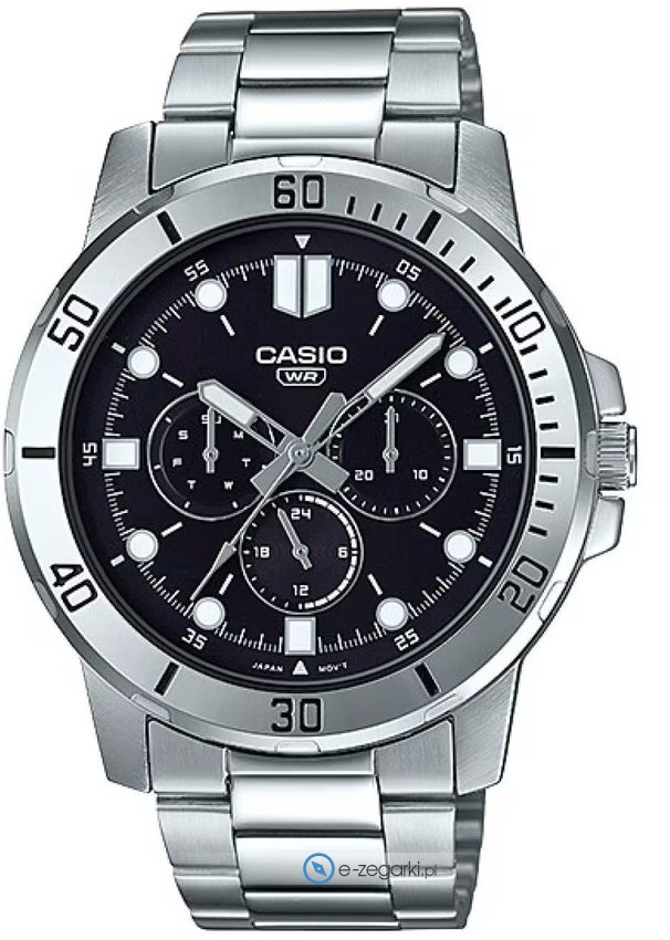 Zegarek MTP-VD300D-1E to synonim japońskiej niezawodności i funkcjonalności. Kwarcowy mechanizm zasilany baterią gwarantuje precyzyjne odmierzanie czasu, a odporna na korozję bransoleta koloru szarego zapewnia trwałość i komfort noszenia. Koperta wykonana ze stali nierdzewnej chroni zegarek przed czynnikami atmosferycznymi, a szkiełko mineralne zapewnia odporność na zarysowania. Wodoszczelność na poziomie WR 30 chroni zegarek przed drobnymi zachlapaniami.