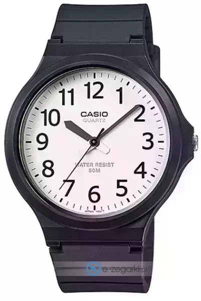 Zegarek męski MW-240-7B marki Casio to dobre połączenie funkcjonalności i modnego designu. Wysokiej trwałości tarczę zegarka pokryto białym kolorem. Pokazana metodą analogową aktualna godzina jest czytelna i prosta do sprawdzenia. Koperta jest ozdobiona kolorem czarnym szeroka jest na 48 mm oraz ma grubość 48 mm - w kształcie okrągłym.