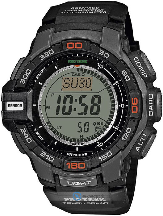Dodatkowo model Casio PRG-270-1ER posiada funkcje takie jak kompas, który idealnie sprawdzi się w czasie podróży wskazując kierunki geograficzne: północ, południe, wschód, zachód, termometr wskazujący aktualną temperaturę w stopniach celcjusza oraz fahrenheita, wysokościomierz sprawdzający obecną wysokość nad poziomem morza oraz barometr - który sprawdza obecne ciśnienie atmosferyczne.