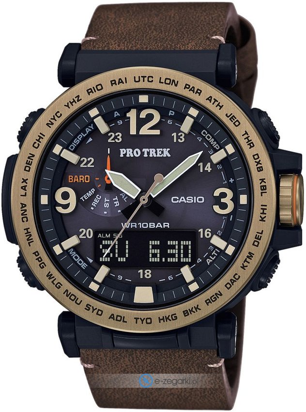 Wśród dodatkowych cech zegarka Casio PRG-600YL-5ER można wymienić kompas, który dobrze sprawdzi się podczas podróży wskazując kierunki geograficzne: północ, południe, wschód, zachód, termometr wskazujący aktualną temperaturę w stopniach celcjusza oraz fahrenheita, wysokościomierz pokazujący aktualną wysokość nad poziomem morza oraz barometr - który sprawdza obecne ciśnienie atmosferyczne.