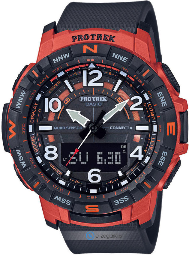 Zegarek męski PRT-B50-4ER marki Casio to dobre połączenie funkcjonalności a także ciekawego designu. Model ten w gamie pozostałych zegarków tego producenta występuje w serii Casio Protrek. Godzina prezentowana jest w sposób cyfrowy co intuicyjnie pozwala ją odczytać. Koperta szeroka jest na 50.8 mm oraz ma grubość 15.58 mm.