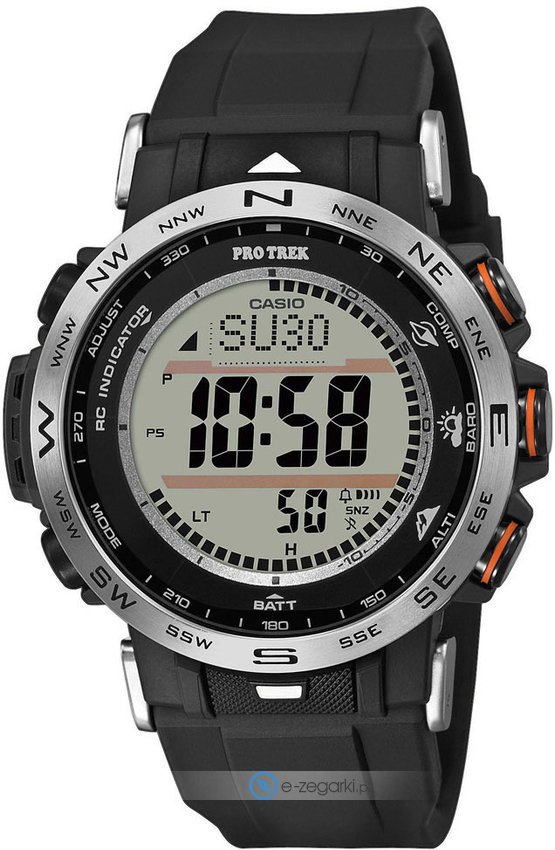 Dodatkowo model Casio PRW-30-1AER jest wyposażony w funkcje takie jak kompas, który idealnie sprawdza się w czasie podróży wskazując kierunki geograficzne: północ, południe, wschód, zachód, termometr wskazujący aktualną temperaturę w stopniach celcjusza oraz fahrenheita, wysokościomierz pokazujący aktualną wysokość nad poziomem morza oraz barometr - który sprawdza obecne ciśnienie atmosferyczne.
