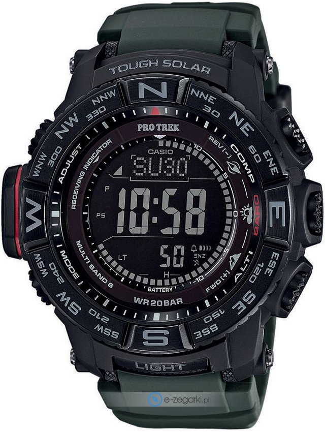 W zegarku PRW-3510Y-8ER zastosowano mechanizm solarny zasilany dowolnym źródłem światła. Pasek zrobiony jest z wysokiej jakości tworzywa sztucznego.