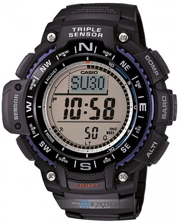 Dodatkowo model Casio SGW-1000-1AER jest wyposażony w funkcje takie jak kompas, który idealnie sprawdza się w czasie podróży wskazując kierunki geograficzne: północ, południe, wschód, zachód, termometr wskazujący aktualną temperaturę w stopniach celcjusza lub fahrenheita, wysokościomierz pokazujący aktualną wysokość nad poziomem morza a także barometr - który sprawdza aktualne ciśnienie atmosferyczne.
