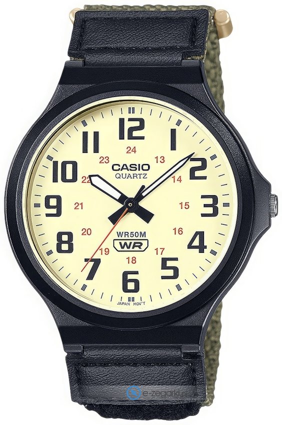 Zegarek MW-240B-3BVEF posiada kwarcowy mechanizm zasilany klasyczną baterią. Pasek jest w kolorze zielonym wykonany jest z wysokiej jakości komponentów.
