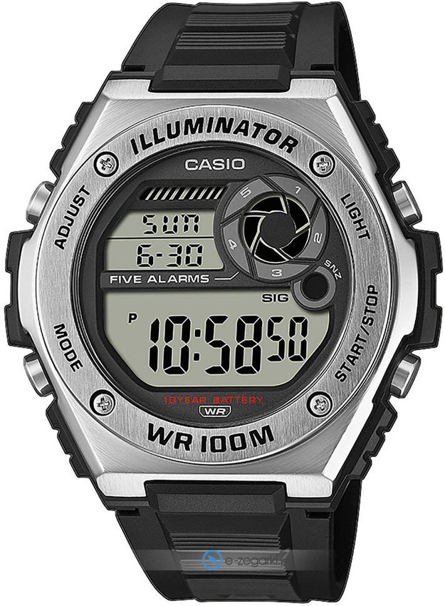 Zegarek męski MWD-100H-1AVEF marki Casio to dobre połączenie funkcjonalności i ciekawego designu. Nieschematyczny wygląd czasomierza osiągnięto również dzięki tarczy w kolorze szarym. Pokazana metodą cyfrową aktualna godzina jest czytelna i szybka do odczytania. Koperta szeroka jest na 50.7 mm oraz ma grubość 13.7 mm - w kształcie okrągłym.