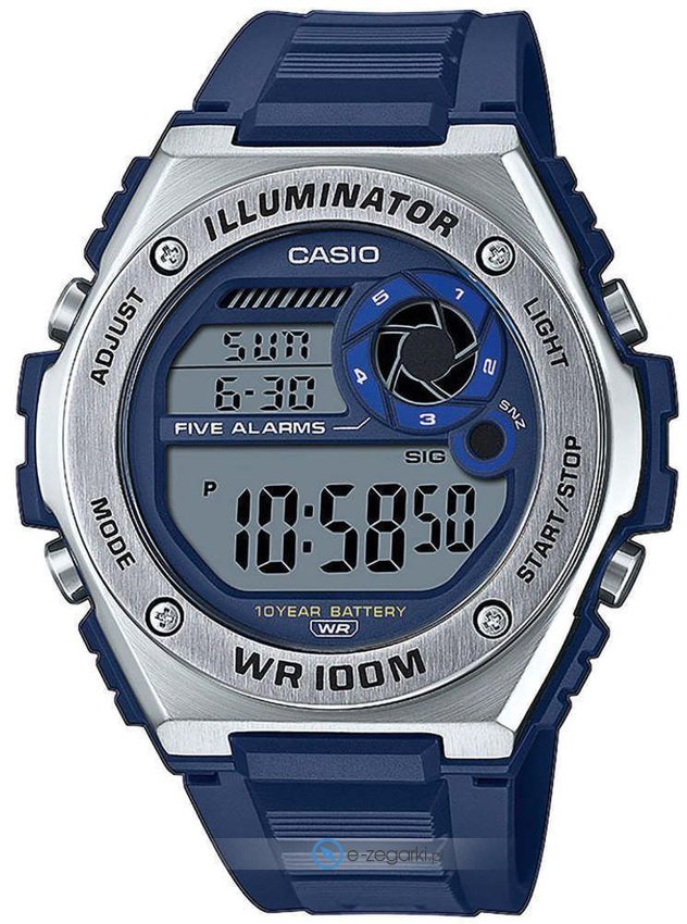 Zasilanie zegarka MWD-100H-2AVEF to standardowa bateria kwarcowa. Pasek granatowego koloru zrobiony jest z wysokiej jakości tworzywa sztucznego.