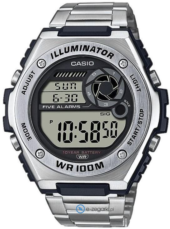 Model MWD-100HD-1AVEF marki Casio to elegancki zegarek naręczny męski, który jest wyposażony w ciekawe rozwiązania i funkcje. Prezentowany model to idealny wybór dla osób ceniących sobie japońską niezawodność i funkcjonalność. Zegarek ten idealnie wpisuje się w charakterystykę kolekcji Casio Sports, która łączy w sobie sportowy design i praktyczne rozwiązania. Zaprezentowana metodą cyfrową aktualna godzina jest czytelna i szybka do sprawdzenia. Koperta szeroka jest na 50.7 mm oraz ma grubość 13.7 mm - charakteryzuje się okrągłym kształtem. Taki rozmiar koperty sprawia, że zegarek prezentuje się wyrazistością i potęgą na męskim nadgarstku.