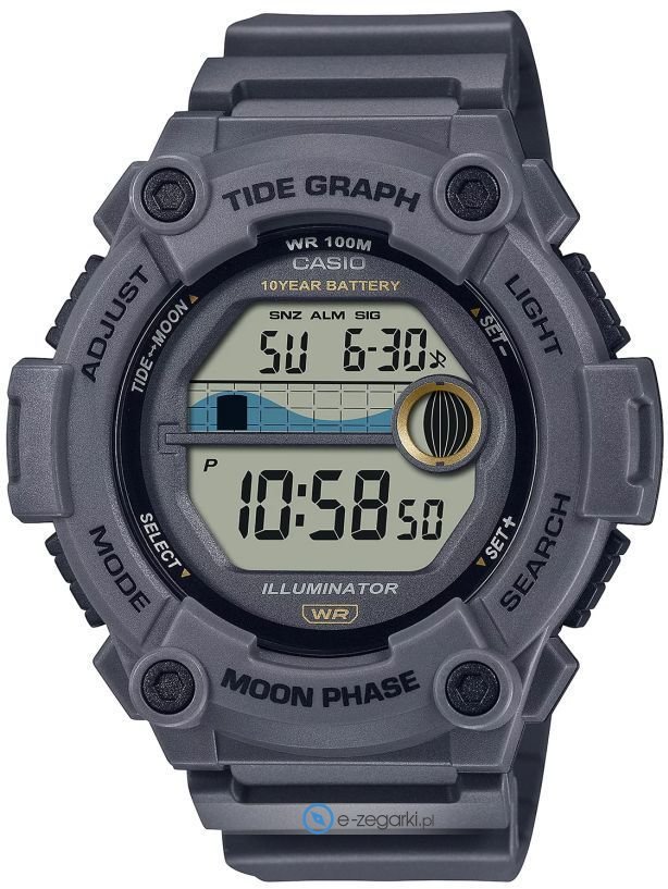Zegarek WS-1300H-8AVEF zasilany jest za pomocą baterii kwarcowej. Pasek koloru szarego wykonany jest z wysokiej jakości tworzywa sztucznego.