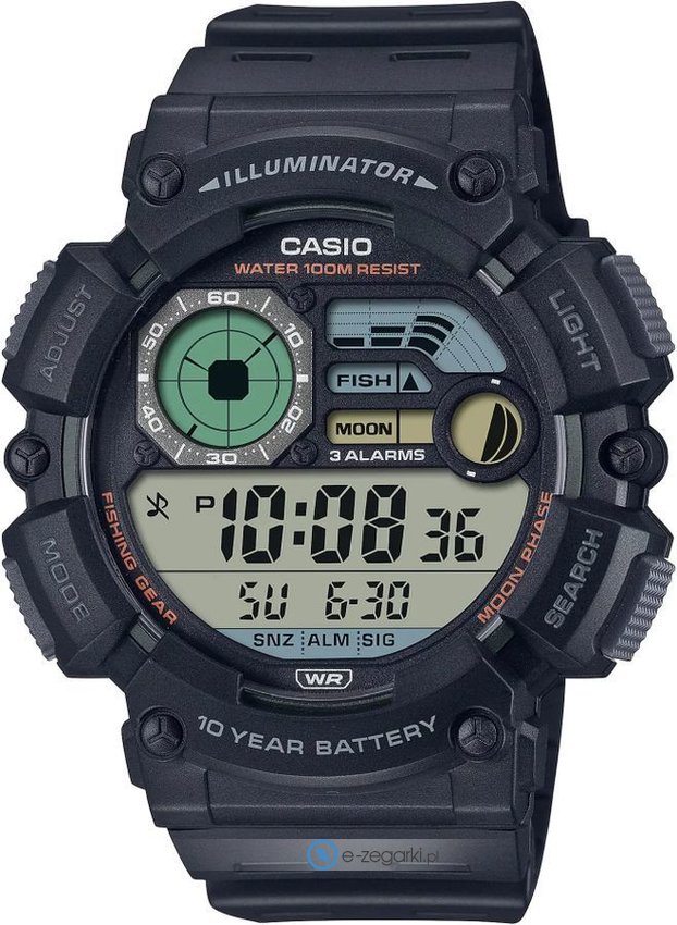 Zasilanie zegarka WS-1500H-1AVEF to klasyczna bateria kwarcowa. Pasek jest w kolorze czarnym zrobiony jest z wysokiej jakości tworzywa sztucznego.