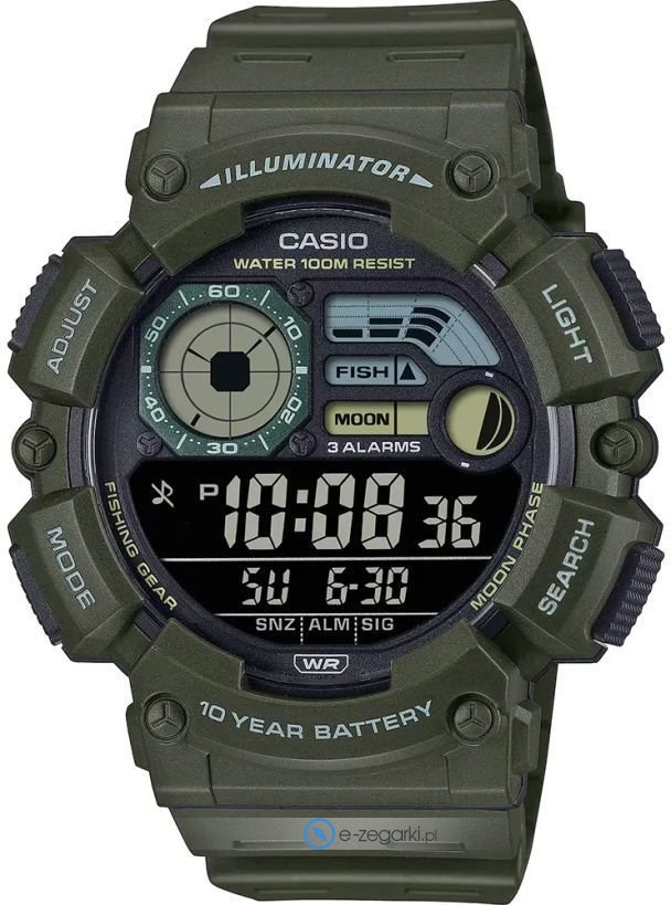 Zegarek WS-1500H-3BVEF wyposażony jest w mechanizm zasilany klasyczną baterią kwarcową. Pasek w odcieniach koloru zielonego wykonany jest z wysokiej jakości tworzywa sztucznego.