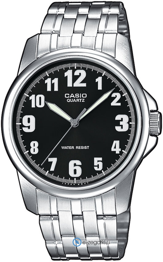 Męski zegarek MTP-1260D-1B z kolekcji Casio Standard Analogue marki Casio to połączenie stylu i oryginalnych funkcji. Ciekawą budowę zegarka uzyskano z pomocą tarczy w kolorze czarnym. Zaprezentowana metodą analogową aktualna godzina jest czytelna i prosta do odczytania. Koperta w odcieniach koloru srebrnego szeroka jest na 39 mm oraz ma grubość 8 mm - wyróżnia się okrągłym kształtem.
