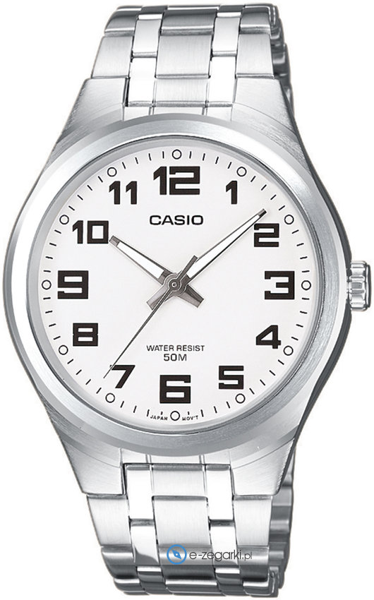 Męski zegarek MTP-1310D-7BVEF z kolekcji Casio Standard Analogue marki Casio to połączenie stylu i nowatorskich funkcji. Stylu dodaje wysokiej jakości tarcza w kolorze białym. Zaprezentowana metodą analogową aktualna godzina jest czytelna i szybka do odczytania. Koperta jest w kolorze srebrnym szeroka jest na 39 mm oraz ma grubość 104 mm - charakteryzuje się okrągłym kształtem.