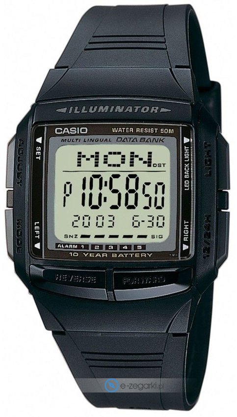 Casio DB-36-1A - męski zegarek kierowany dla osób szukających zegarka z kolekcji Casio Standard Digital. Nieschematyczny wygląd czasomierza uzyskano m.in. poprzez cyferblat w kolorze czarnym. Zegarek ten prezentuje godzinę w formacie cyfrowym dzięki czemu odczyt jest bezproblemowy. Koperta w odcieniach koloru czarnego szeroka jest na 36 mm oraz ma grubość 10 mm - w kształcie prostokątnym.