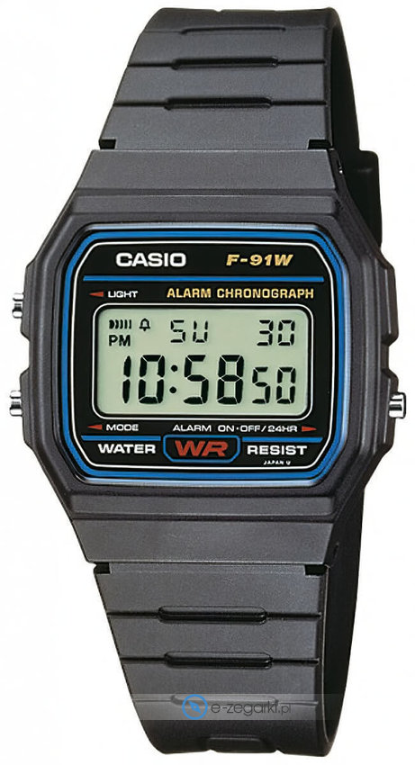 Zegarek F-91W-1YEG posiada kwarcowy mechanizm zasilany normalną baterią. Pasek zrobiony jest z wysokiej jakości tworzywa sztucznego.