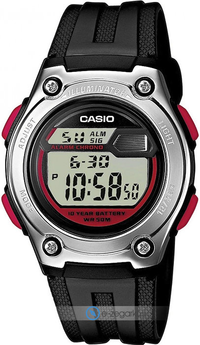 Zegarek W-211-1BVEF zasilany jest za pomocą baterii kwarcowej. Pasek czarnego koloru zrobiony jest z wysokiej jakości tworzywa sztucznego.