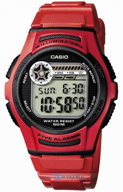 Casio W-213-4AVEF to męski zegarek przeznaczony dla osób szukających zegarka z serii Casio Standard Digital. Tarcza zegarka w kolorze czarnym. Godzina pokazywana jest w sposób cyfrowy co bez trudu pozwala ją odczytać. Koperta jest w kolorze czerwonym szeroka jest na 45 mm oraz ma grubość 11 mm - w kształcie okrągłym.