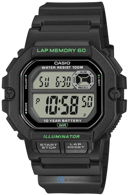 Model męski WS-1400H-1A z kolekcji Casio Standard Digital marki Casio. Zegarek ten pokazuje aktualny czas w formacie cyfrowym dzięki temu odczyt jest bardzo łatwy. Koperta w barwach koloru czarnego szeroka jest na 45 mm oraz ma grubość 13 mm - w kształcie prostokątnym.