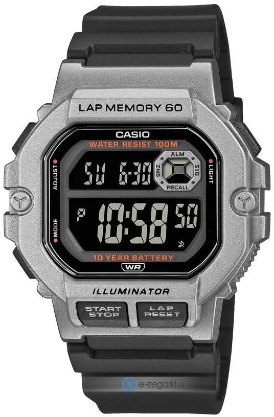 Zegarek WS-1400H-1B posiada kwarcowy mechanizm zasilany normalną baterią. Pasek czarnego koloru wykonany jest z wysokiej jakości tworzywa sztucznego.