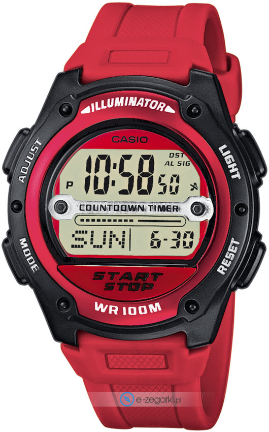 Kwarcowa bateria zamontowana w zegarku W-756-4AVEF zapewnia zasilanie jego mechanizmu. Pasek jest w kolorze czerwonym wykonany jest z wysokiej jakości tworzywa sztucznego.