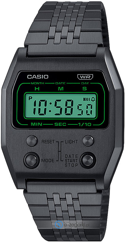 Zegarek męski A1100B-1EF marki Casio to model z kolekcji Casio Vintage, która łączy w sobie klasyczny design z nowoczesną technologią. Styl zapewnia wysokiej jakości cyferblat w kolorze czarnym. Godzina zaprezentowana jest w sposób cyfrowy co intuicyjnie pozwala ją odczytać. Koperta jest w kolorze czarnym szeroka jest na 35 mm oraz ma grubość 9 mm. Doskonale sprawdzi się na nadgarstku, podkreślając jego subtelność i biżuteryjny charakter.