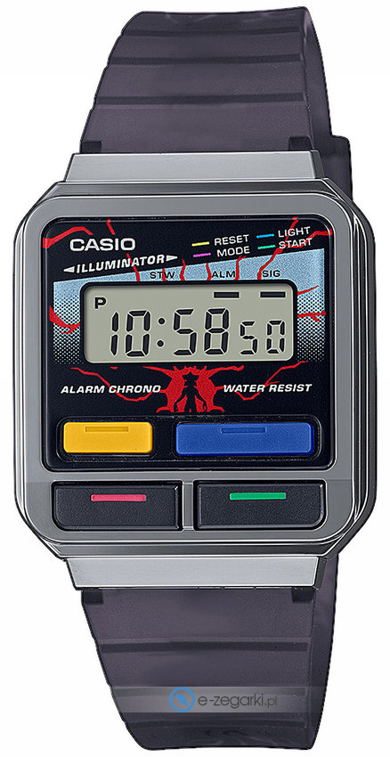 Zegarek A120WEST-1AER marki Casio to elegancki zegarek naręczny męski, który wyposażono w pomysłowe rozwiązania i funkcje. Model ten zalicza się do kolekcji Casio Vintage. Cyferblat zegarka jest w kolorze czarnym. Zaprezentowana metodą cyfrową aktualna godzina jest czytelna i łatwa do sprawdzenia. Koperta w barwach koloru szarego szeroka jest na 34 mm oraz ma grubość 9 mm - w kształcie prostokątnym.