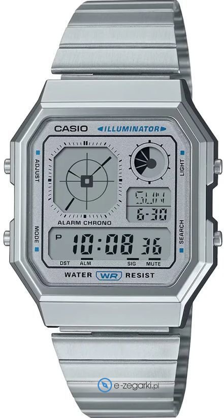 Zegarek męski A130WE-7AEF marki Casio to idealne połączenie funkcjonalności a także modnego designu. Model ten w gamie innych zegarków tego producenta występuje w serii Casio Vintage. Wysokiej trwałości cyferblat zegarka ozdobiono szarym kolorem. Pokazana metodą cyfrową aktualna godzina jest czytelna i prosta do sprawdzenia. Koperta została pokryta kolorem srebrnym szeroka jest na 34 mm oraz ma grubość 9 mm.