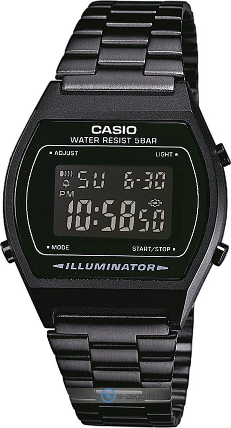 Zegarek męski B640WB-1BEF marki Casio to stylowe połączenie funkcjonalności oraz ciekawego designu. Model ten jest z kolekcji Casio Collection. Godzina zaprezentowana jest w sposób cyfrowy co bez trudu pozwala ją odczytać. Koperta szeroka jest na 35 mm oraz ma grubość 9 mm.