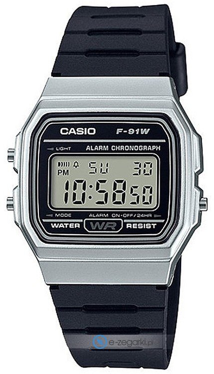 Model F-91WM-7A posiada mechanizm zasilany tradycyjną baterią kwarcową. Pasek w tonacji koloru czarnego wykonany jest z wysokiej jakości tworzywa sztucznego.