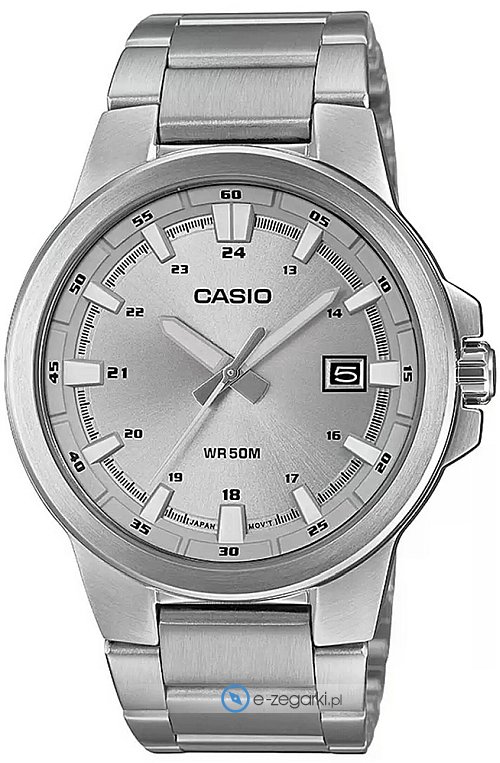 Zasilanie zegarka MTP-E173D-7AVEF to klasyczna bateria kwarcowa. Odporna na korozję oraz oddziaływanie czynników atmosferycznych bransoleta srebrnego koloru cechuje się jakością, a także trwałością.