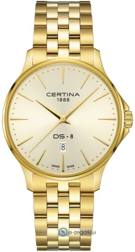 Certina to jedna z kultowych i podziwianych szwajcarskich marek zegarków w Europie. Sama jej nazwa wywodzi się od łacińskiego znaczenia pewny co najlepiej rzutuje na samą powagę marki. Zegarki Certina to klasyka bez żadnego problemu broniąca się przed upływającym czasem. Jak przystało na taką markę czasomierze produkowane są tylko z najszlachetniejszych możliwych surowców. Z upływem lat brand ten dostawał wiele wyróżnień, zaszczytów czy medali - nierzadko deklasując konkurencję w poważnych konkursach. Certina jest także posiadaczem rozmaitych licencji wykorzystywanych do produkcji czasomierzy. Ponieważ to szwajcarska marka to na tarczach zegarków nie mogło także zabraknąć głośnego na całym świecie atrynutu Swiss Made.
