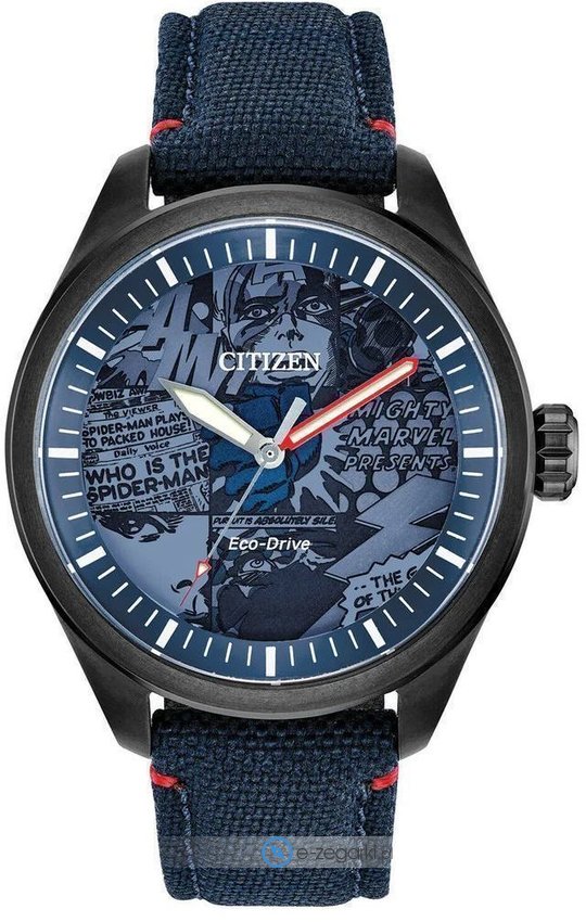 Zegarek AW2037-04W Marvel Heroes został wyposażony w autorski mechanizm Citizen Eco-Drive zasilany jakimkolwiek źródłem światła. Pasek jest w kolorze niebieskim zrobiony jest z wysokiej jakości materiałów.