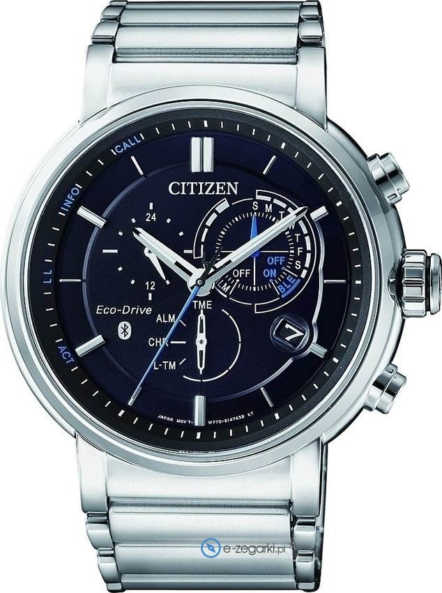 Wśród innych cech zegarka Citizen BZ1001-86E można wyróżnić bluetooth z pomocą którego połączymy zegarek ze smartwatchem.
