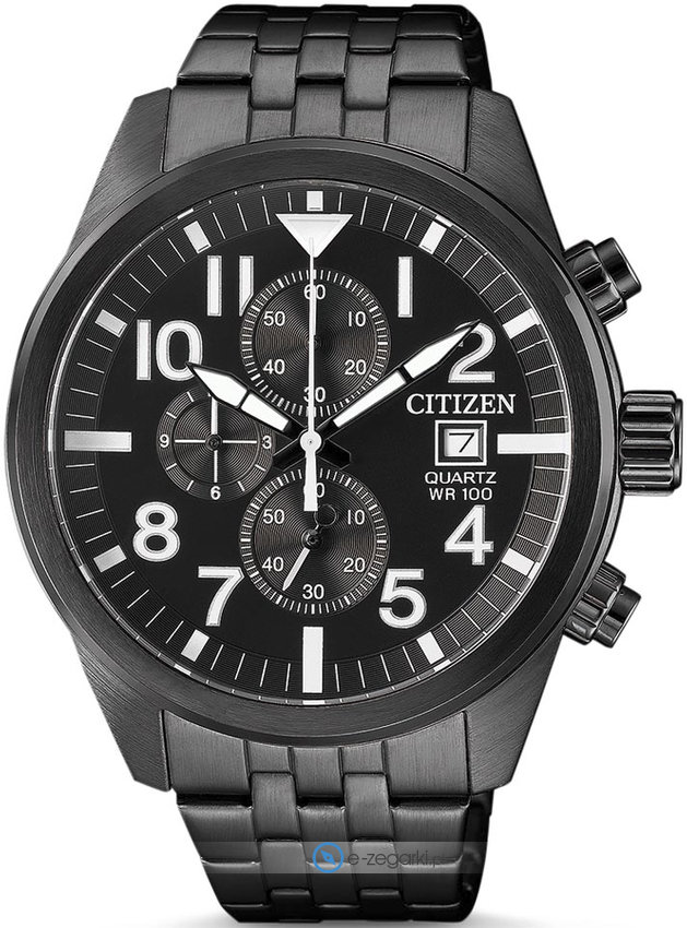 Zegarek AN3625-58E marki Citizen to elegancki zegarek naręczny męski, który jest wyposażony w pomysłowe rozwiązania oraz funkcje. Model ten pochodzi z serii Citizen Chrono. Nieschematyczny wygląd czasomierza osiągnięto również dzięki tarczy w kolorze czarnym. Zegarek ten prezentuje godzinę w formacie analogowym dzięki czemu odczyt jest bezproblemowy. Koperta jest w kolorze czarnym szeroka jest na 43 mm oraz ma grubość 12 mm - cechuje się okrągłym kształtem.