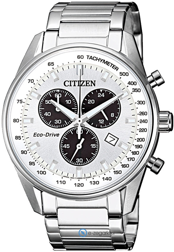 Zegarek męski AT2390-82A marki Citizen to dobre połączenie funkcjonalności i ciekawego designu. Model ten jest z kolekcji Citizen Chrono. Tarcza zegarka jest w kolorze białym. Aktualna godzina pokazywana jest w sposób analogowy co bez trudu pozwala ją odczytać. Koperta jest w kolorze stalowym szeroka jest na 40 mm oraz ma grubość 10 mm - w kształcie okrągłym.