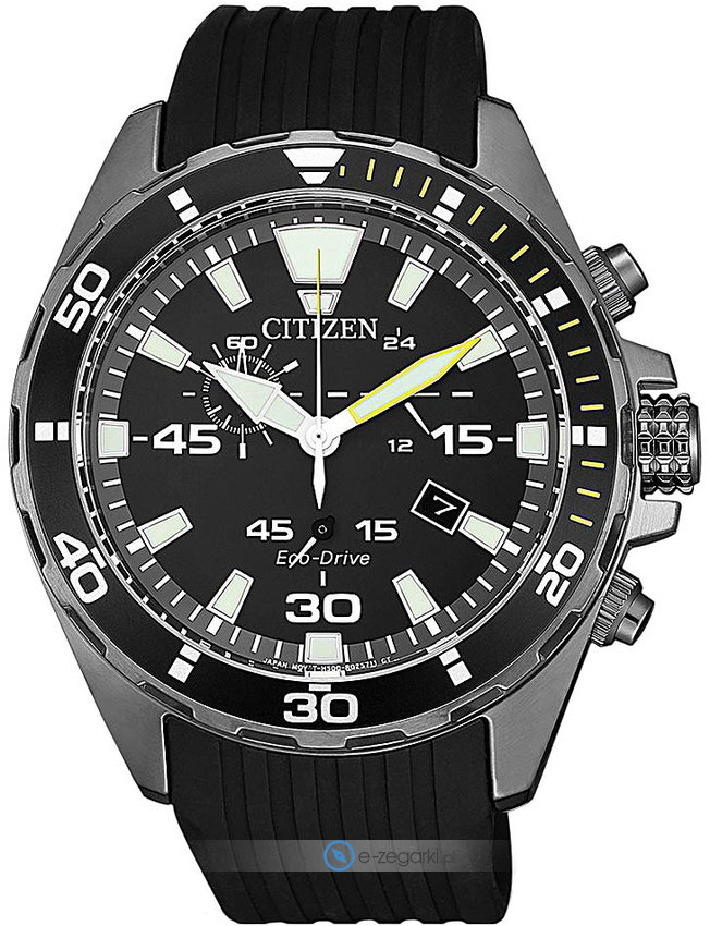 Model męski AT2437-13E należy do rodziny Citizen Chrono marki Citizen. Ciekawy wygląd czasomierza uzyskano m.in. poprzez tarczę w kolorze czarnym. Pokazana metodą analogową aktualna godzina jest czytelna i prosta do sprawdzenia. Koperta w barwach koloru czarnego szeroka jest na 42 mm oraz ma grubość 12.5 mm - charakteryzuje się okrągłym kształtem.