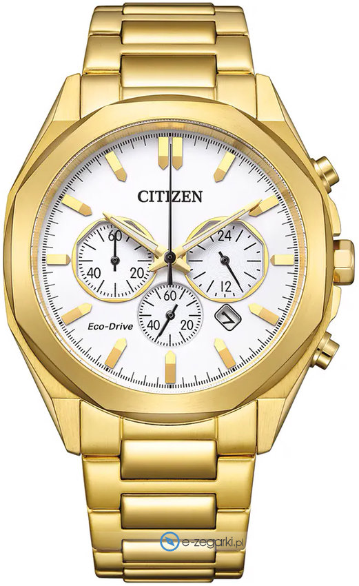 Model męski CA4592-85A należy do rodziny Citizen Chrono marki Citizen. Cyferblat zegarka jest w kolorze białym. Godzina zaprezentowana jest w sposób analogowy co bez trudu pozwala ją odczytać. Koperta w barwach koloru złotego szeroka jest na 41 mm oraz ma grubość 12 mm - posiada okrągły kształt.