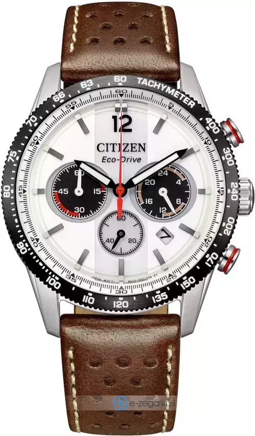 Męski zegarek CA4714-04A z serii Citizen Chrono marki Citizen to połączenie stylu oraz nieprzeciętnych funkcji. Nieschematyczny wygląd zegarka uzyskano m.in. poprzez tarczę w kolorze białym. Aktualna godzina pokazywana jest w sposób analogowy co intuicyjnie pozwala ją odczytać. Koperta szeroka jest na 40 mm - ma okrągły kształt.