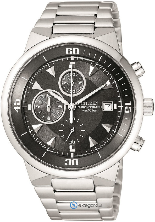 Zegarek AN3371-54E marki Citizen to elegancki zegarek naręczny męski, który posiada ciekawe rozwiązania oraz funkcje. Model ten jest z kolekcji Citizen Chronograph. Cyferblat zegarka jest w kolorze czarnym. Zegarek ten pokazuje aktualny czas w formacie analogowym dzięki czemu odczyt jest intuicyjny. Koperta została ozdobiona kolorem srebrnym szeroka jest na 43 mm oraz ma grubość 7 mm - posiada okrągły kształt.