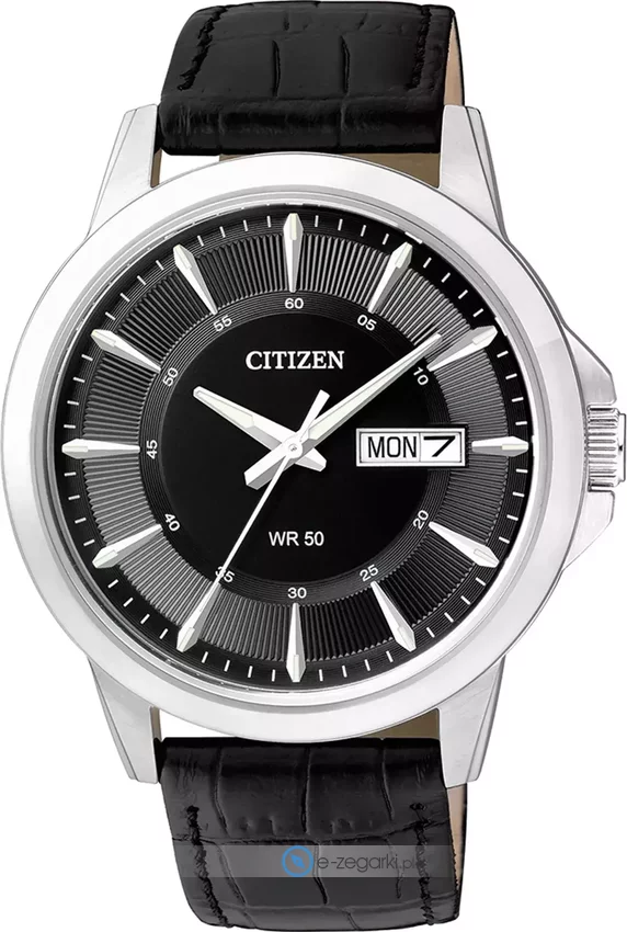 Model BF2011-01EE posiada mechanizm zasilany klasyczną baterią kwarcową. Pasek jest w kolorze czarnym zrobiony jest z wysokiej klasy skóry zapewniającej trwałość i komfort użytkowania.
