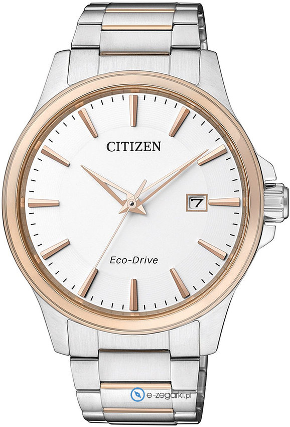 Zegarek męski BM7294-51A marki Citizen to dobre połączenie funkcjonalności oraz modnego wzornictwa. Model ten w gamie pozostałych zegarków tego producenta występuje w serii Citizen Classics. Niebanalną konstrukcję czasomierza osiągnięto z pomocą tarczy w kolorze białym. Zegarek ten pokazuje godzinę w formacie analogowym dzięki temu odczyt jest bezproblemowy. Koperta jest w kolorze różowo złotym szeroka jest na 40 mm oraz ma grubość 9 mm - cechuje się okrągłym kształtem.