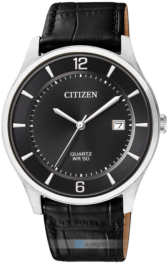 Zegarek męski BD0041-03F marki Citizen to stylowe połączenie funkcjonalności oraz modnego wzornictwa. Model ten występuje w kolekcji Citizen Leather. Cyferblat zegarka jest w kolorze czarnym. Zegarek ten pokazuje godzinę w formacie analogowym dzięki temu odczyt jest bardzo łatwy. Koperta w barwach koloru stalowego szeroka jest na 39 mm oraz ma grubość 7 mm - ma okrągły kształt.