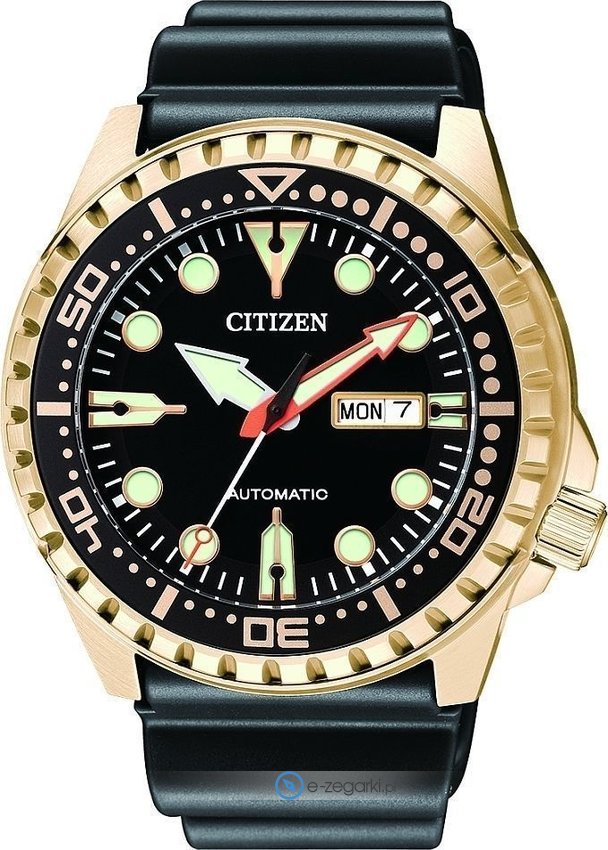 Męski zegarek NH8383-17EE z kolekcji Citizen Mechanical marki Citizen to połączenie stylu i pomysłowych funkcji. Wysokiej jakości tarczę zegarka ozdobiono czarnym kolorem. Zegarek ten pokazuje aktualny czas w formacie analogowym dzięki temu odczyt jest bezproblemowy. Koperta w odcieniach koloru złotego szeroka jest na 46 mm oraz ma grubość 13 mm - posiada okrągły kształt.