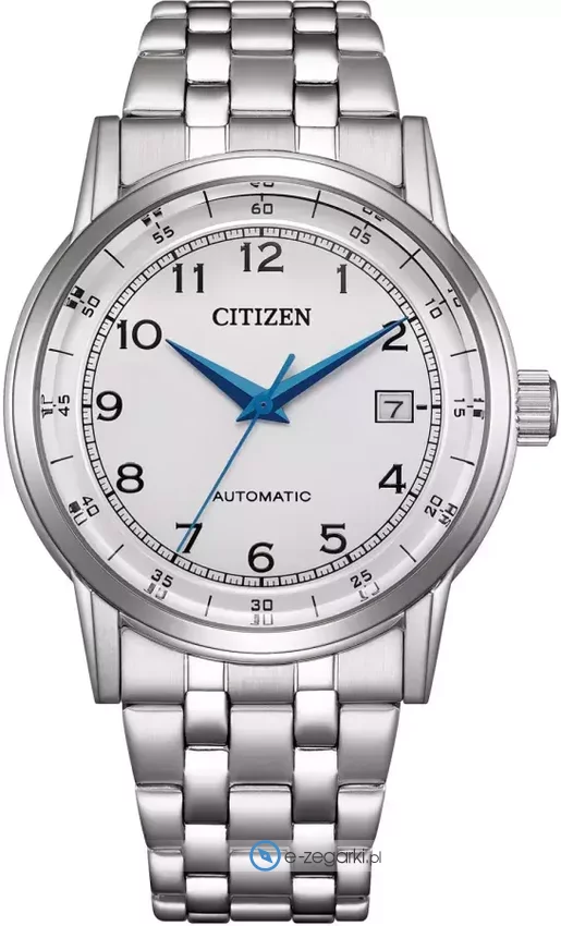 Zegarek męski NJ0210-56A marki Citizen z serii Citizen Mechanical. Nieschematyczny wygląd zegarka osiągnięto m.in. poprzez cyferblat w kolorze białym. Godzina zaprezentowana jest w sposób analogowy co intuicyjnie pozwala ją odczytać. Koperta została ozdobiona kolorem stalowym szeroka jest na 40 mm - ma okrągły kształt.