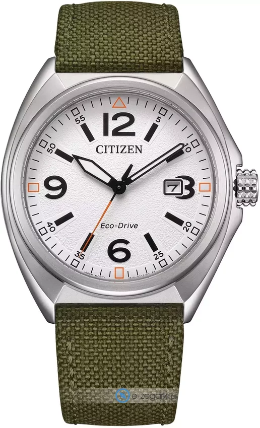 Zegarek AW1571-09A posiada autorski mechanizm Citizen Eco-Drive zasilany jakimkolwiek źródłem światła. Pasek w odcieniach koloru zielonego zrobiony jest z wysokiej jakości tworzywa sztucznego.