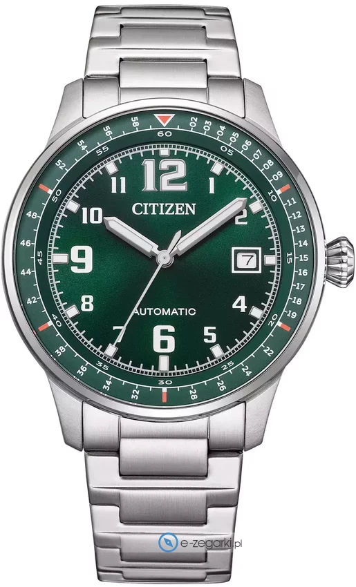 Model męski NJ0190-51X należy do rodziny Citizen Military marki Citizen. Wysokiej jakości tarczę zegarka ozdobiono zielonym kolorem. Pokazana metodą analogową aktualna godzina jest czytelna i łatwa do sprawdzenia. Koperta jest w kolorze stalowym szeroka jest na 40 mm - posiada okrągły kształt.
