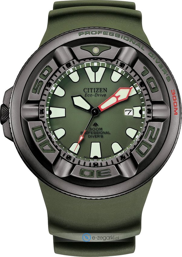 Zegarek BJ8057-17X posiada autorski mechanizm Citizen Eco-Drive zasilany dowolnym źródłem światła. Pasek jest w kolorze zielonym wykonany jest z wysokiej jakości tworzywa sztucznego.