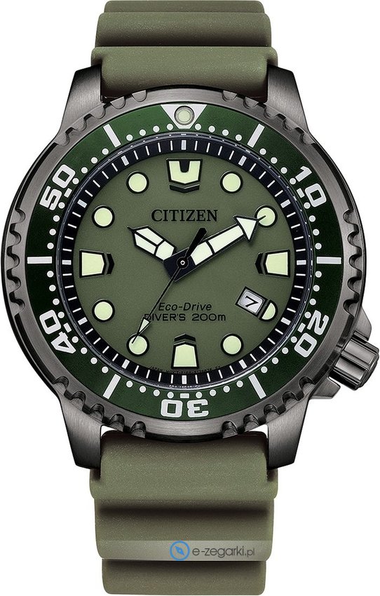 Zegarek BN0157-11X posiada autorski mechanizm Citizen Eco-Drive zasilany dowolnym źródłem światła. Pasek koloru zielonego wykonany jest z wysokiej jakości tworzywa sztucznego.