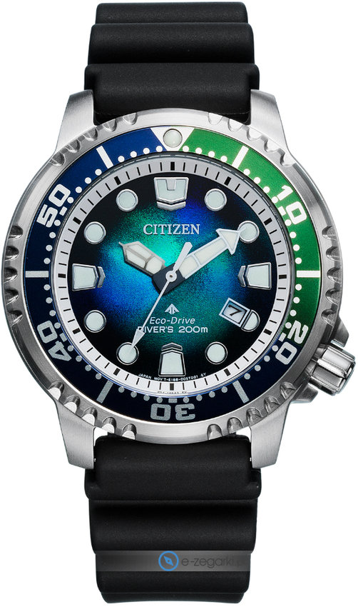 Zegarek BN0166-01L marki Citizen to stylowy zegarek naręczny męski, który posiada pomysłowe rozwiązania oraz funkcje. Model ten występuje w serii Citizen Promaster. Wysokiej jakości cyferblat zegarka pokryto niebieskim kolorem. Aktualna godzina zaprezentowana jest w sposób analogowy co bez trudu pozwala ją odczytać. Koperta w barwach koloru srebrnego szeroka jest na 44 mm oraz ma grubość 12 mm - w kształcie okrągłym.