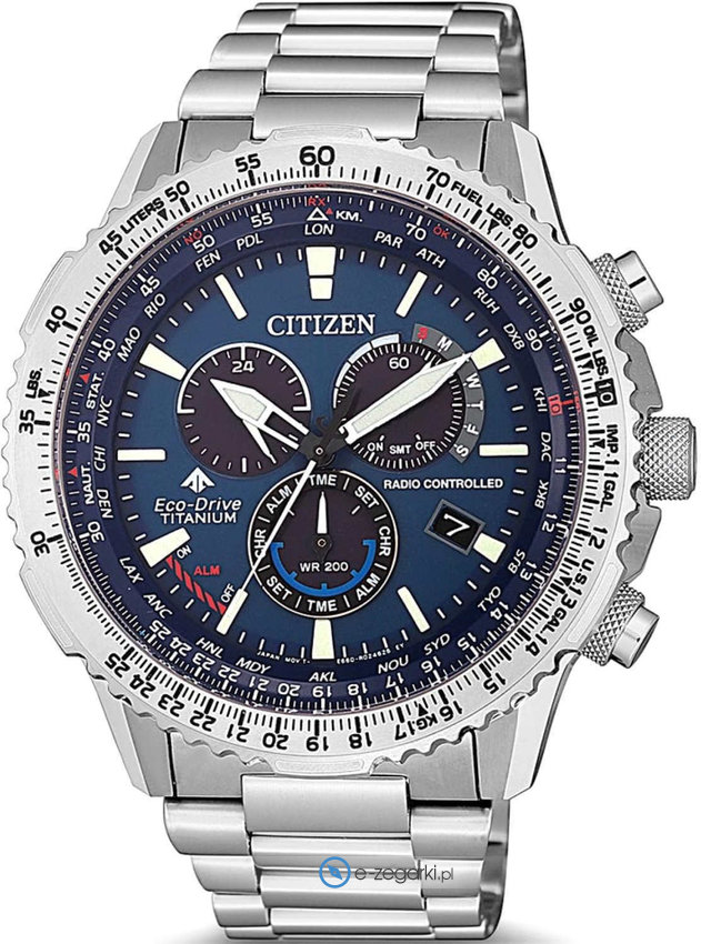 Model męski CB5010-81L marki Citizen z kolekcji Citizen Promaster. Wysokiej trwałości cyferblat zegarka ozdobiono granatowym kolorem. Zegarek ten prezentuje aktualny czas w formacie analogowym dzięki temu odczyt jest intuicyjny. Koperta jest w kolorze stalowym szeroka jest na 45 mm oraz ma grubość 14 mm - w kształcie okrągłym.